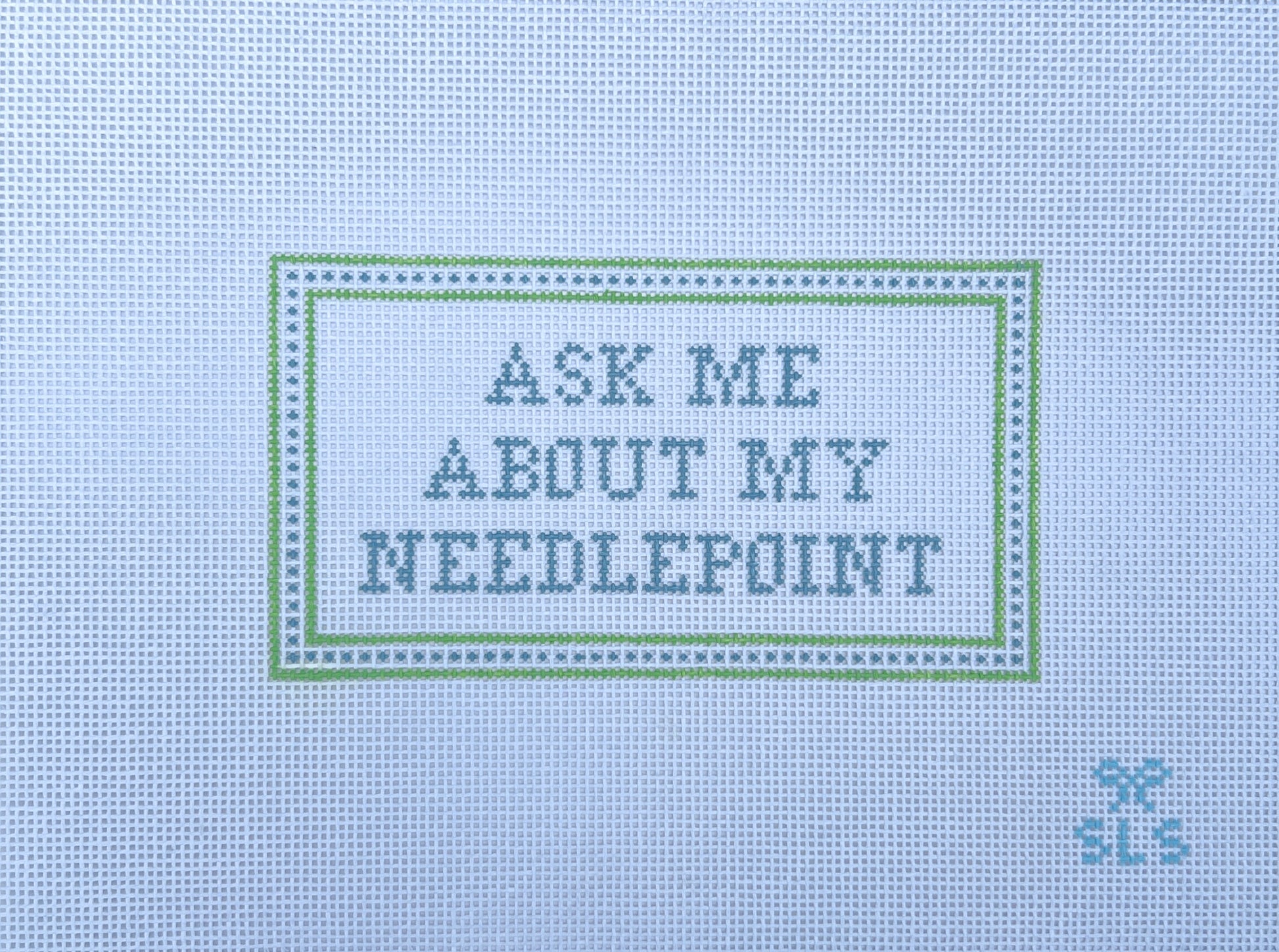 Ask Me About My Needlepoint hand-painted needlepoint sign by SLS Needlepoint