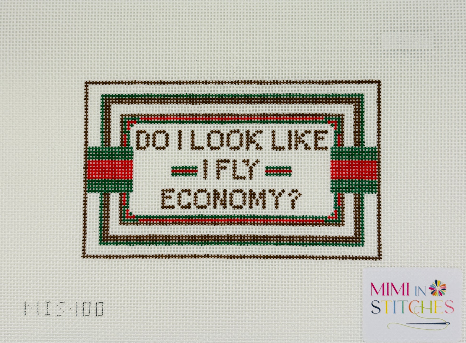 Do I look like I fly economy? hand-painted needlepoint canvas by Mimi in Stitches