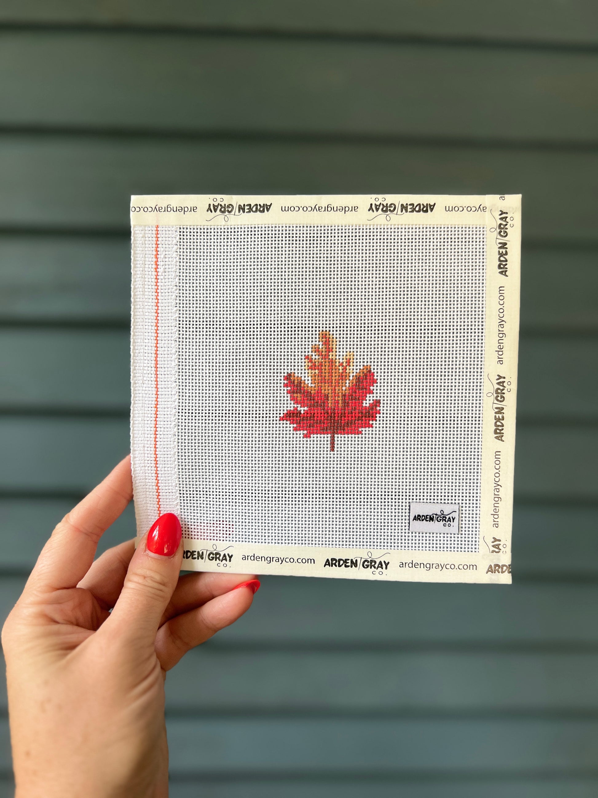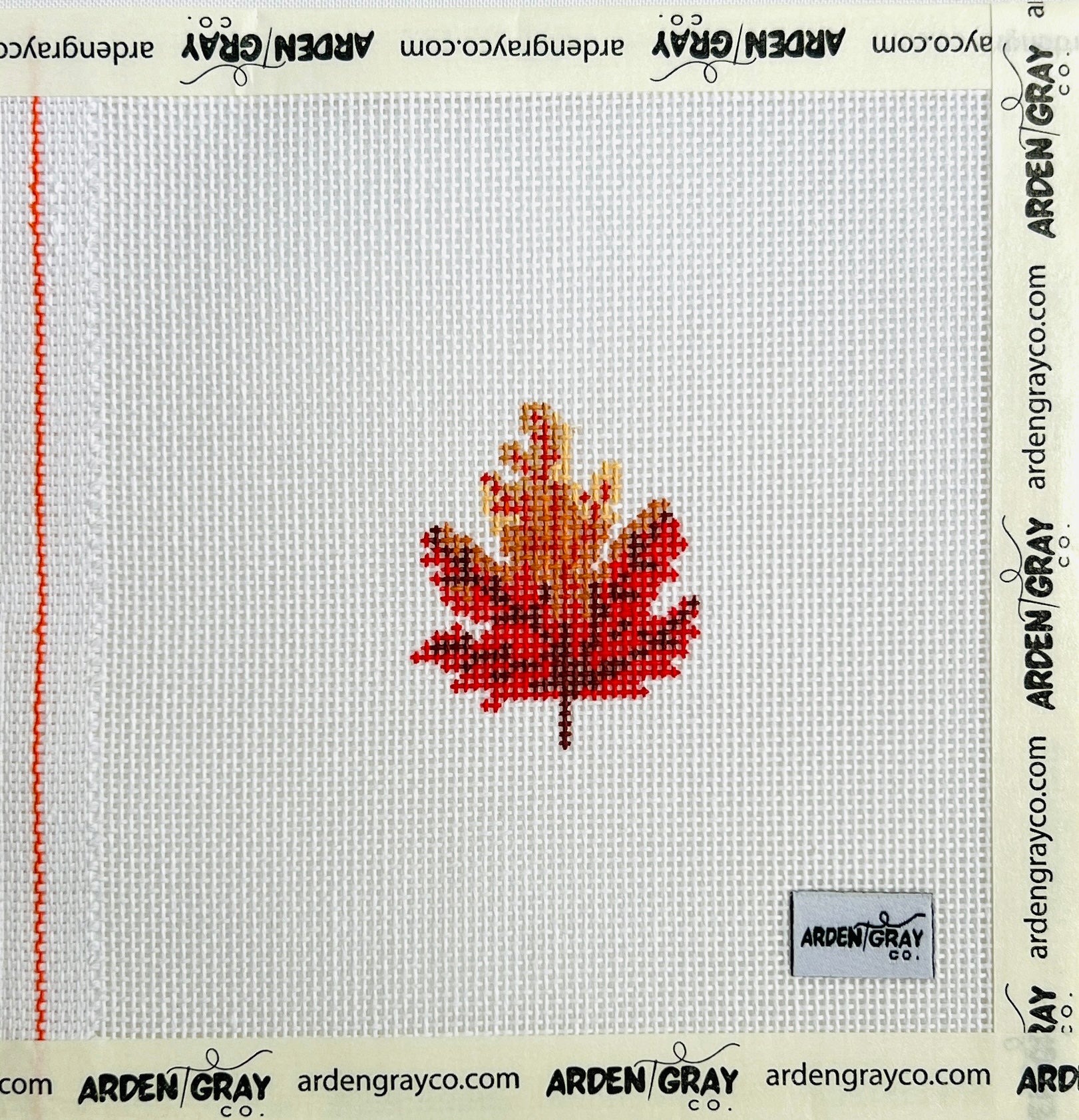 Fall leaf hand-painted mini needlepoint canvas by Arden Gray Co.