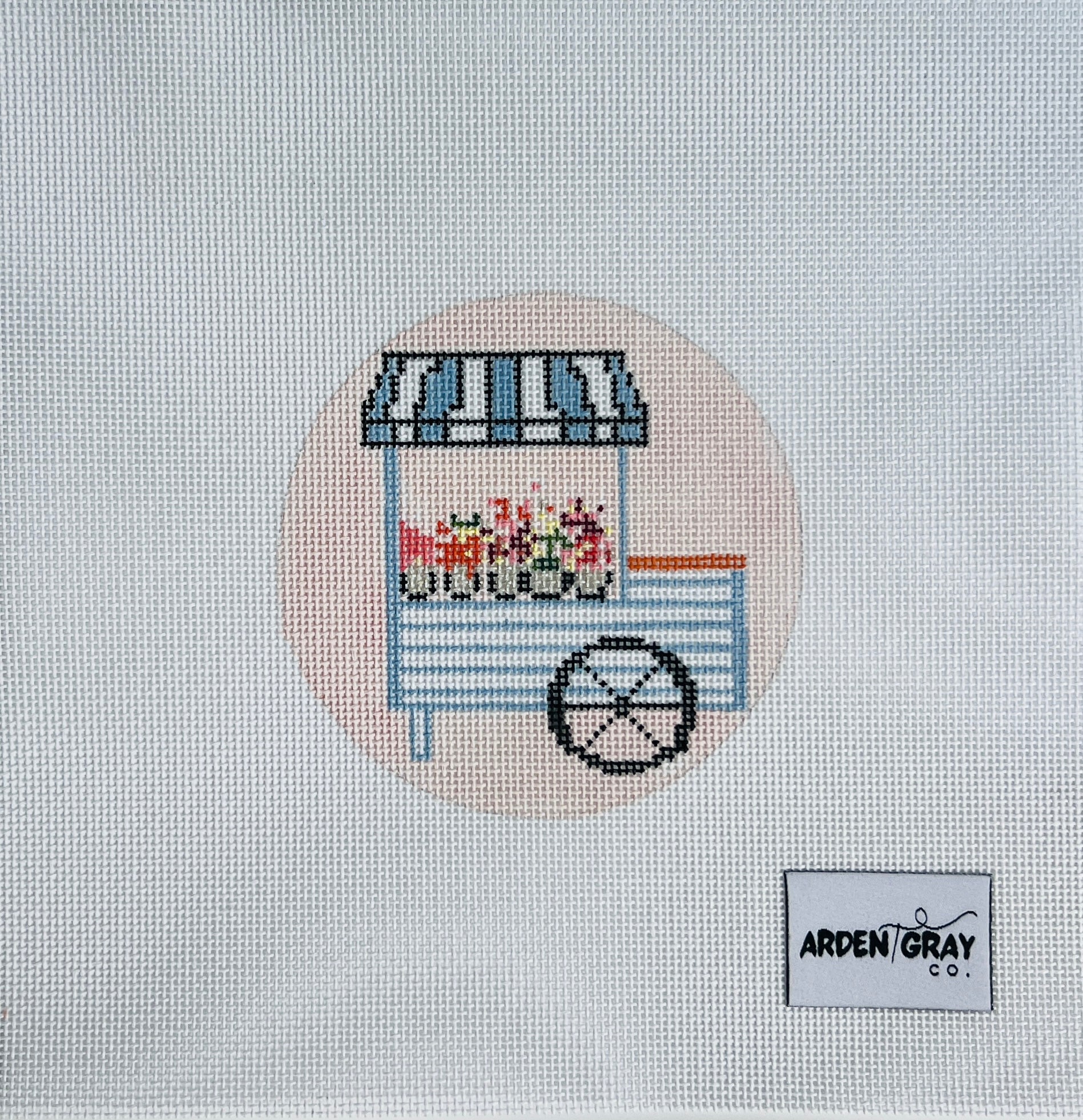 Flower cart hand-painted needlepoint canvas by Arden Gray Co.