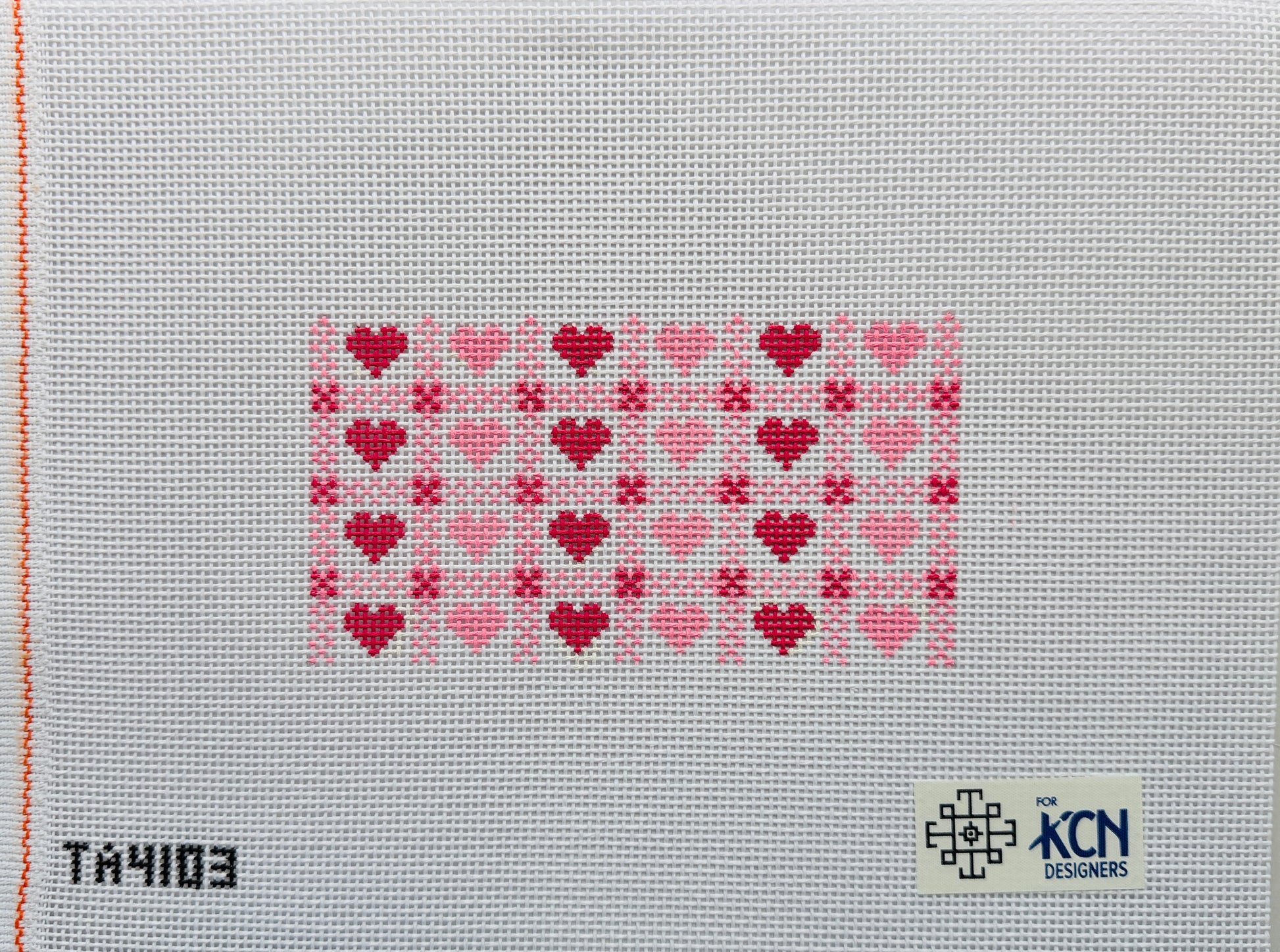 Gingham Hearts hand-painted needlepoint canvas by KCN Designers