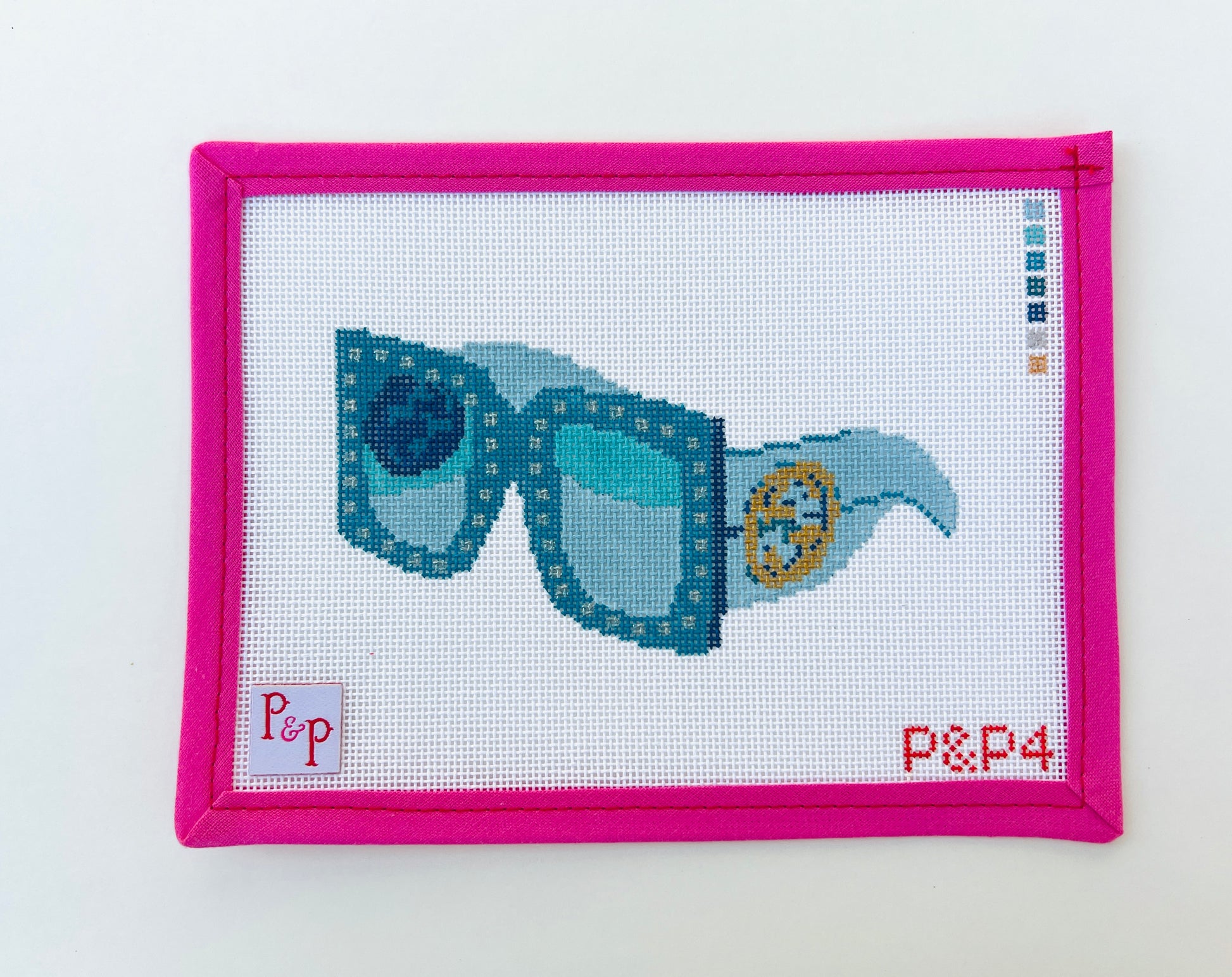 Glam goggles hand-painted needlepoint canvas by Penny & Penny