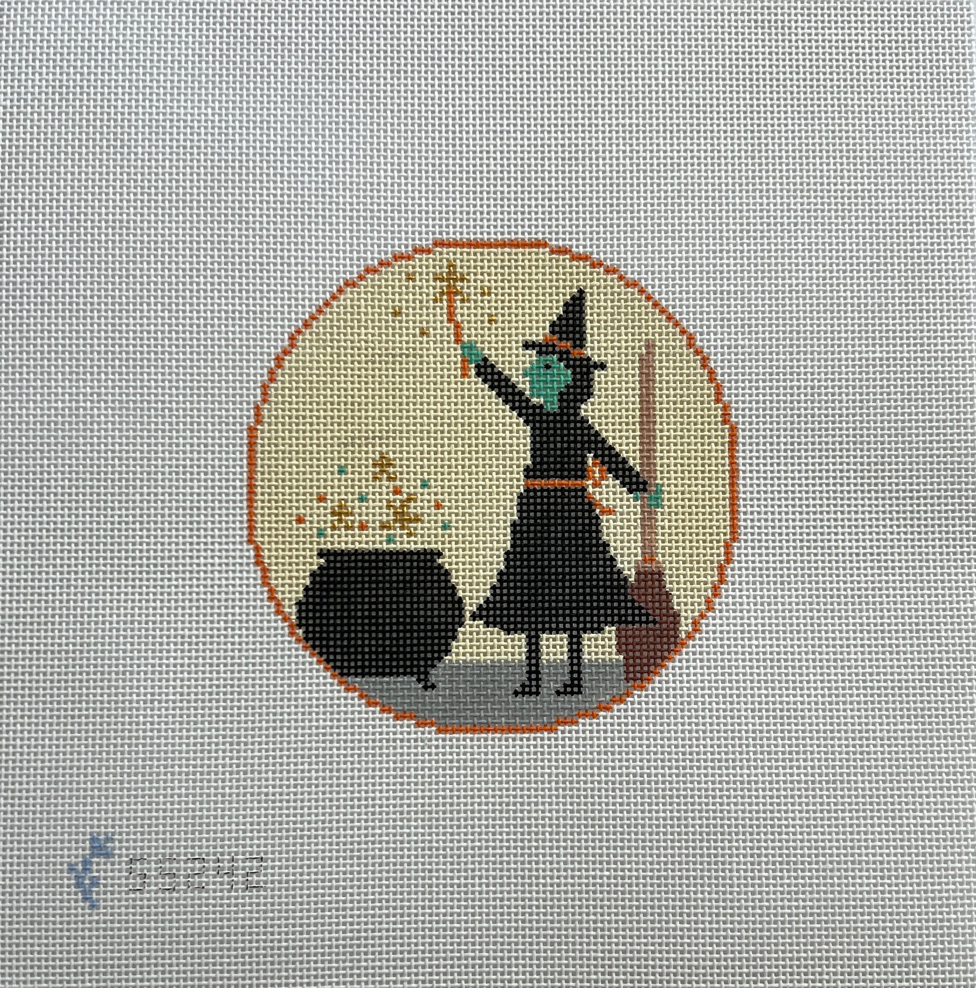 Halloween Witch and Cauldron Needlepoint Canvas by Stitch Style Needlepoint