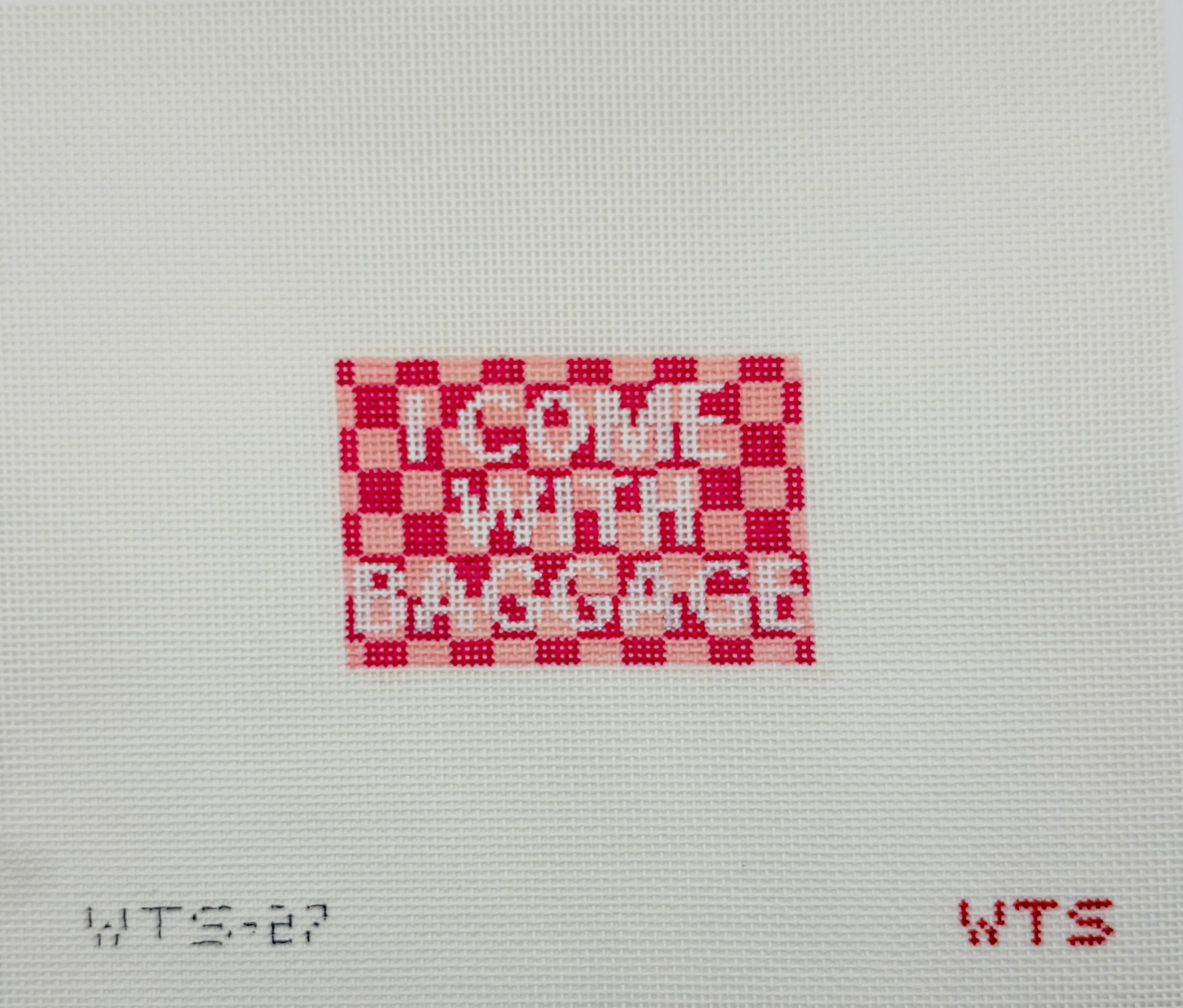 I come with baggage luggage tag hand-painted needlepoint canvas by What's The Stitch