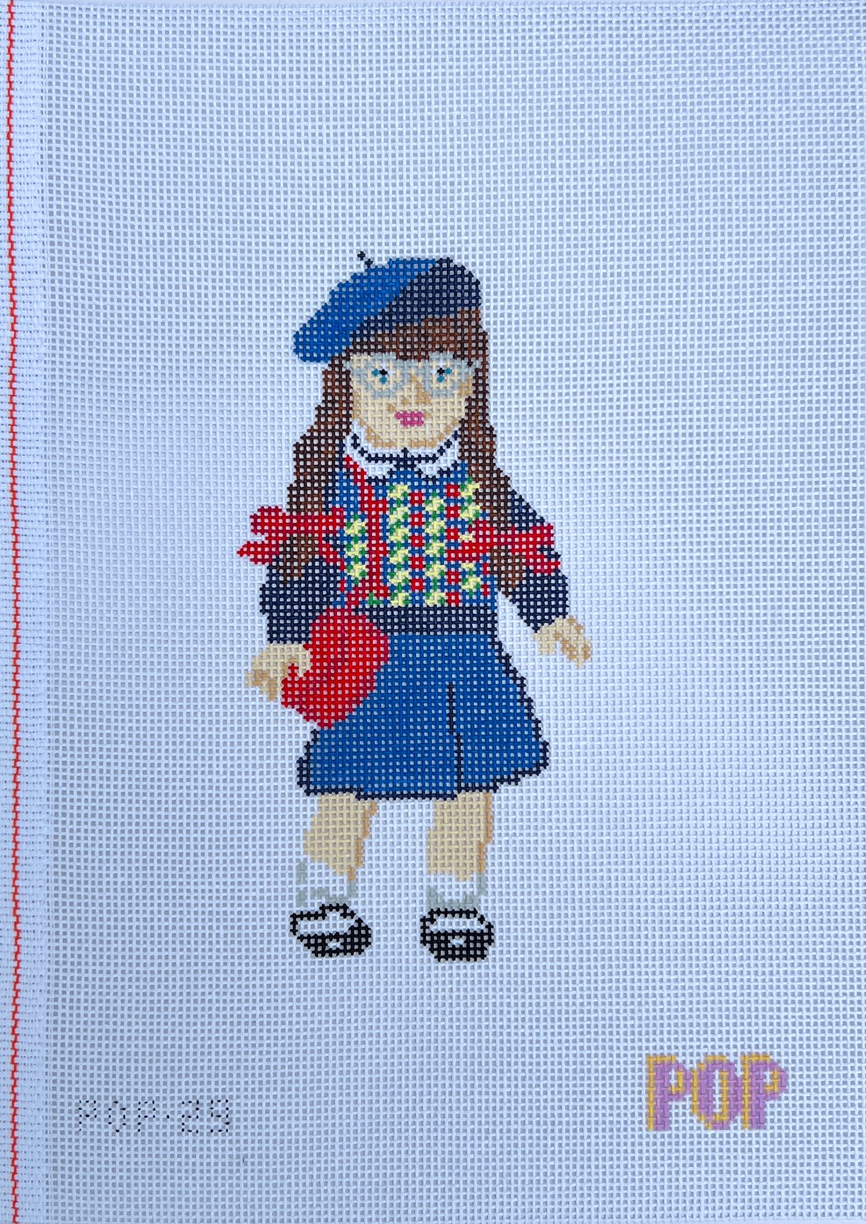 Molly doll needlepoint canvas hand painted by Pop Needle Arts