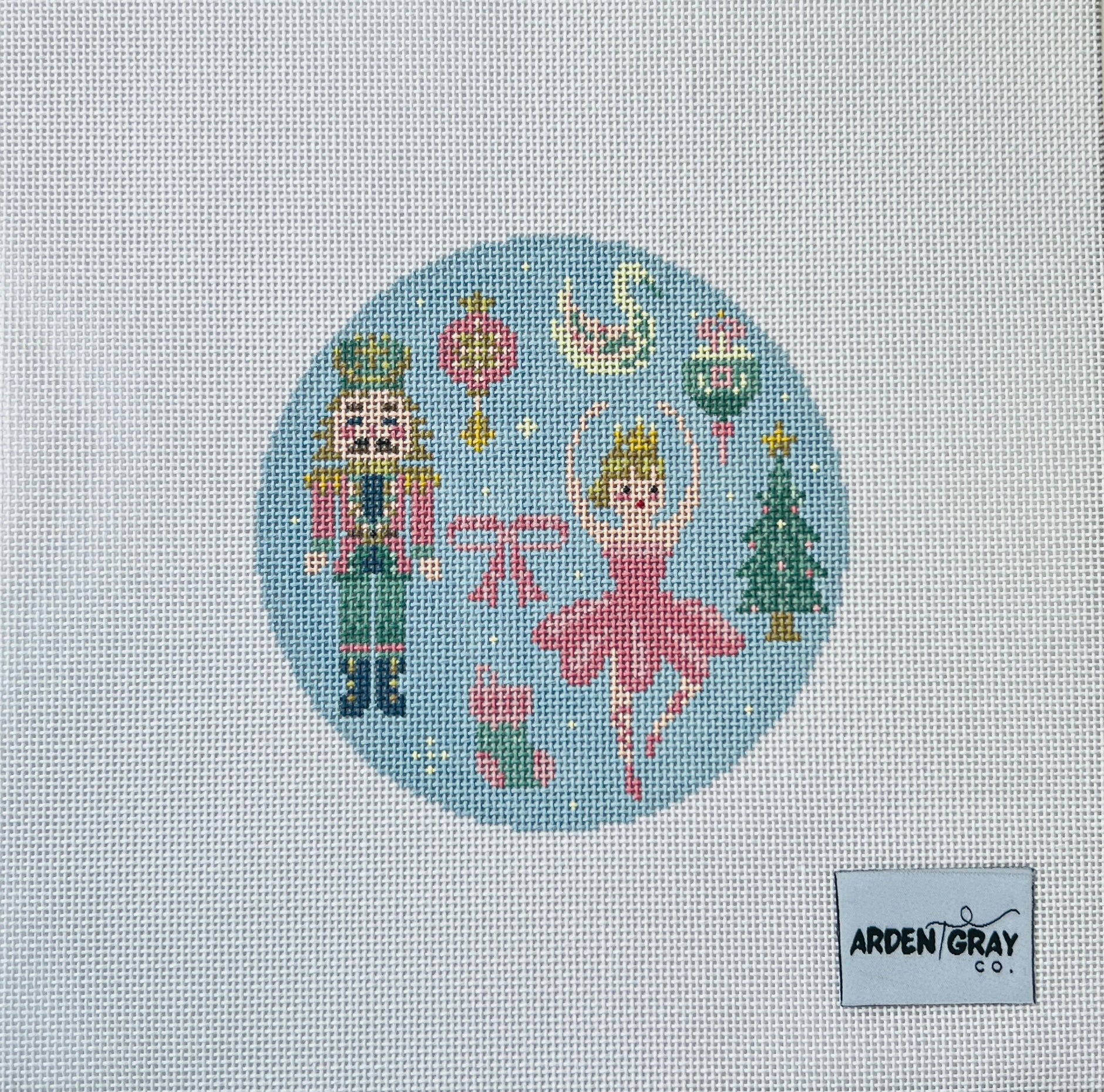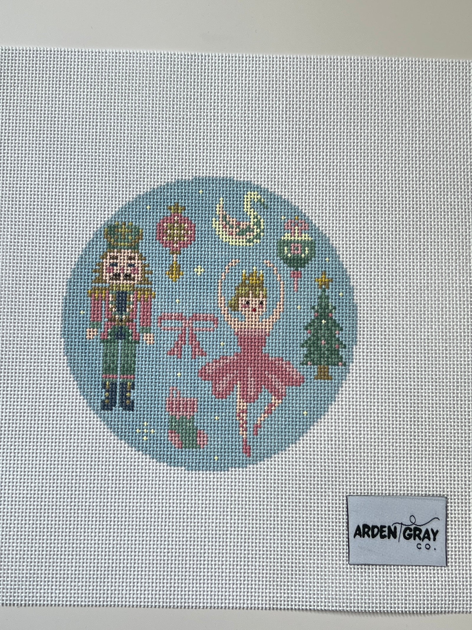 Pastel Nutcracker Round hand-painted needlepoint canvas by Arden Gray Co.