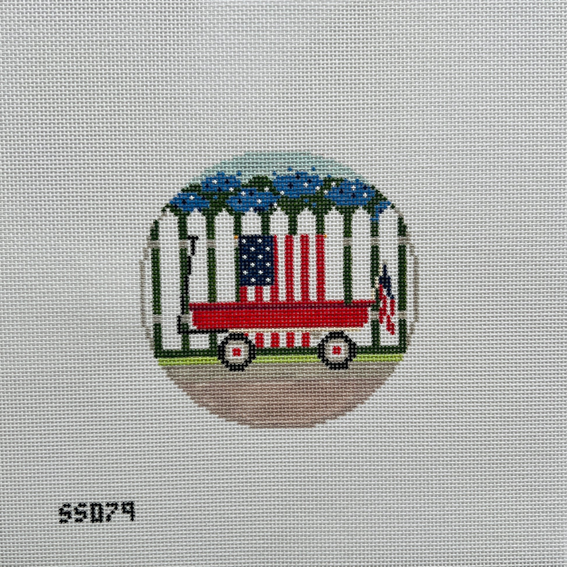 Patriotic Wagon Round Needlepoint Canvas by Stitch Style Needlepoint