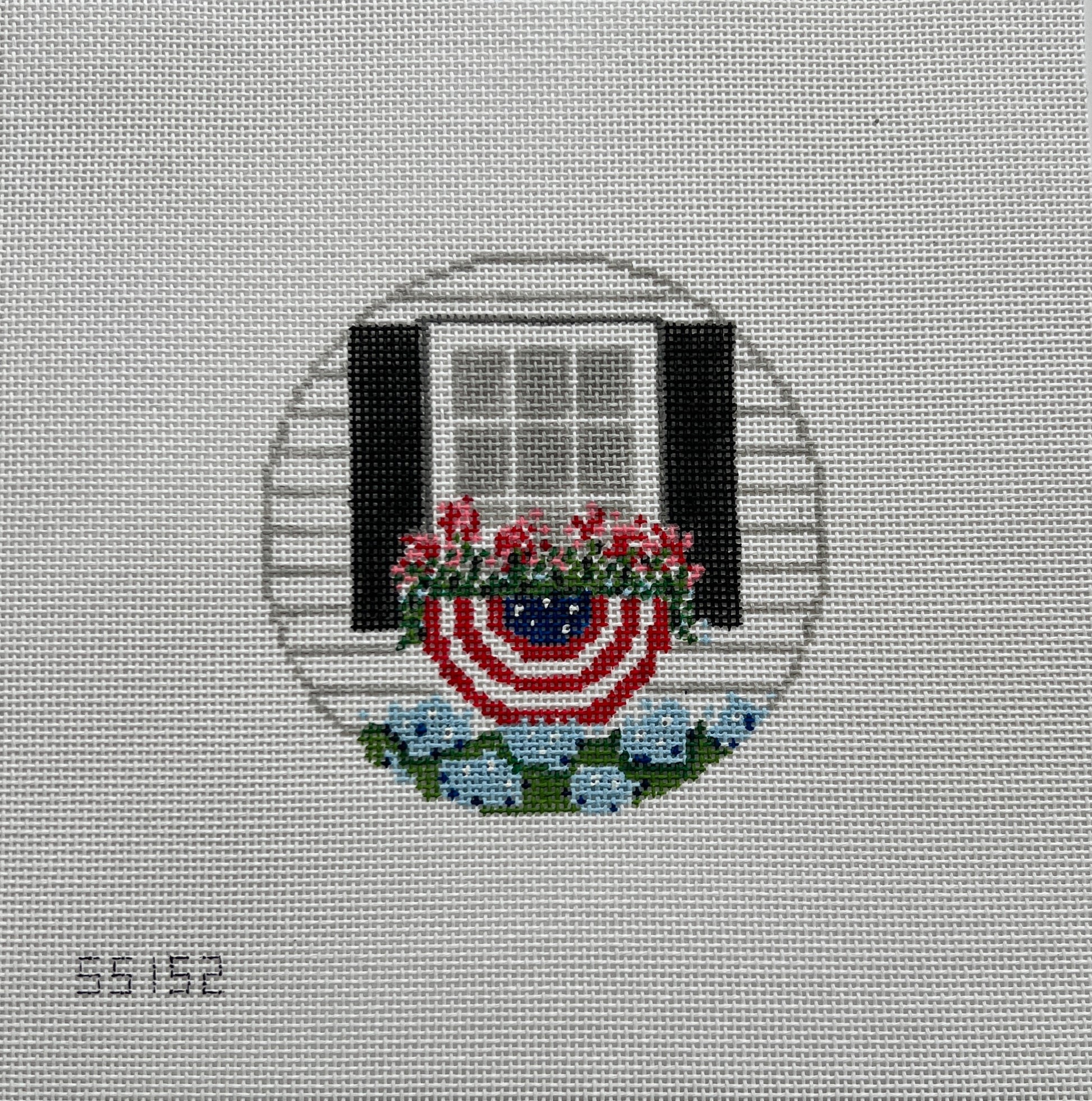 Patriotic Window with Bunting Needlepoint Canvas by Stitch Style Needlepoint
