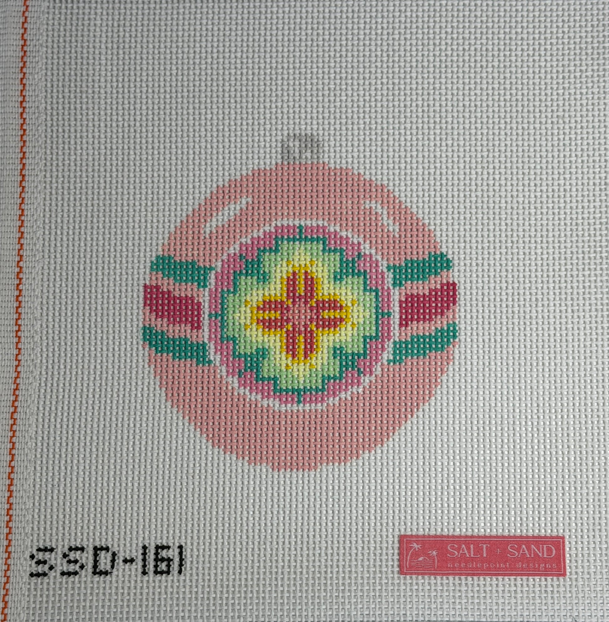 Pink Reflector Ornament Design by Salt + Sand Needlepoint