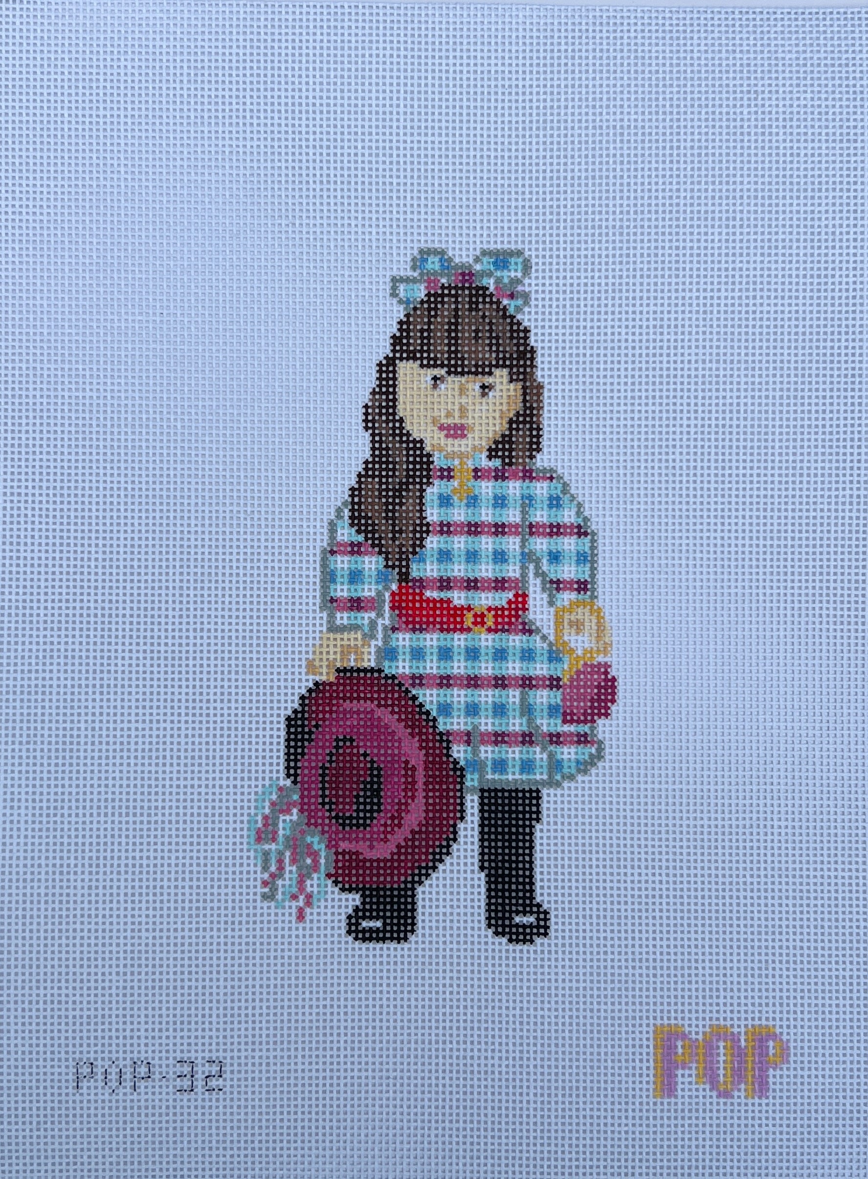 Samantha Doll Needlepoint Canvas hand-painted by Pop Needle Arts