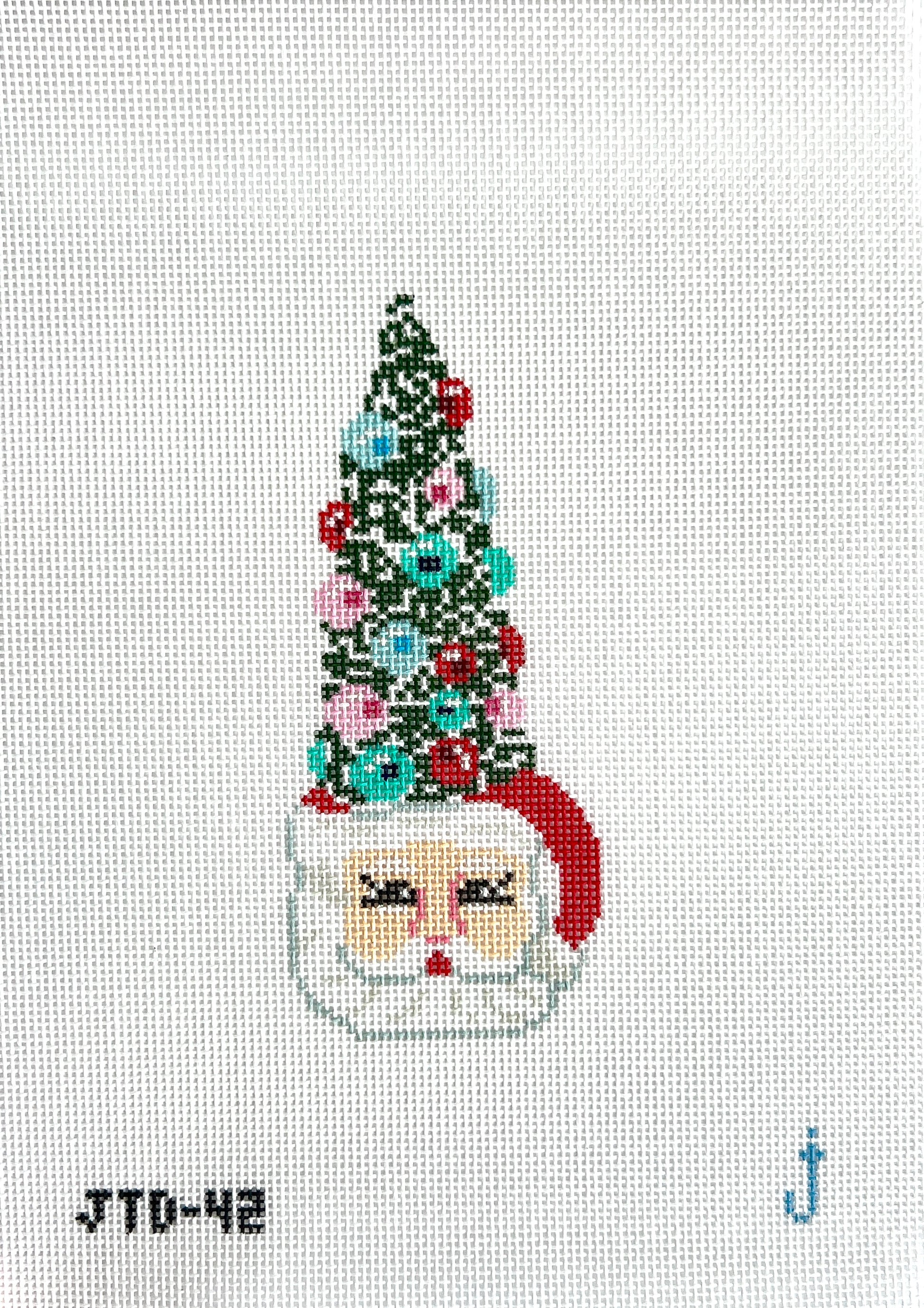 Santa Mug with Christmas Tree hand-painted needlepoint design by Jessica Tongel Designs
