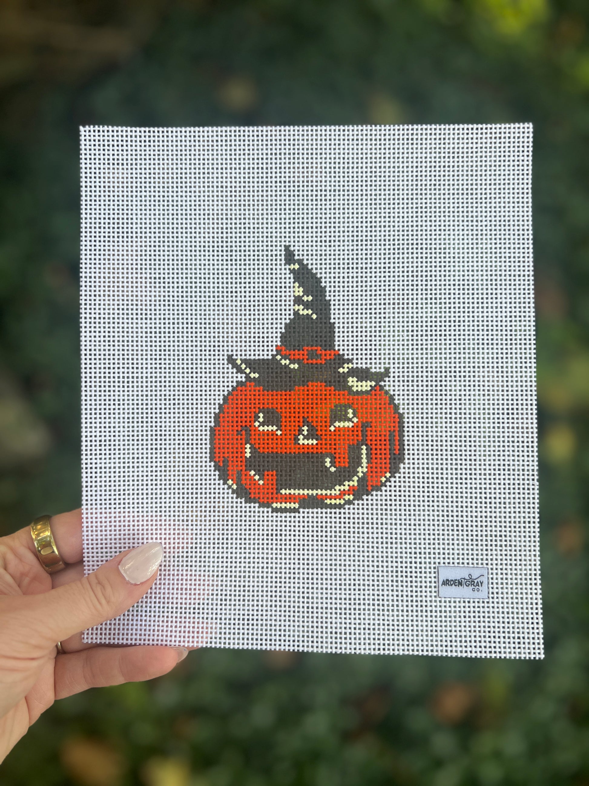Vintage witch pumpkin hand-painted needlepoint canvas by Arden Gray